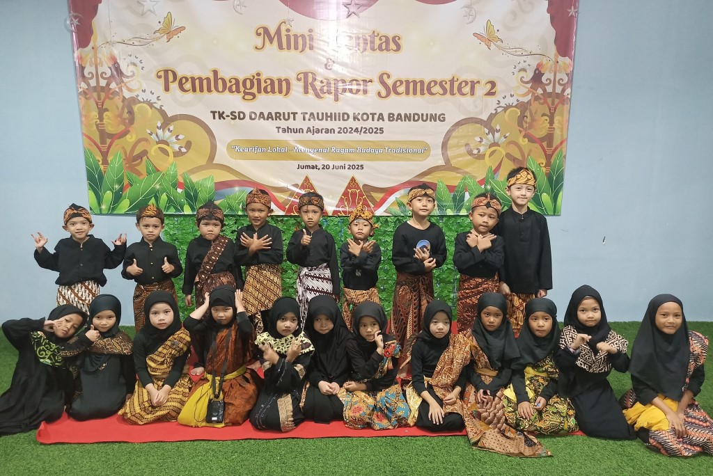 “Alhamdulillah, TK-SD Daarut Tauhiid Bandung telah melaksanakan kegiatan pembagian rapor sebagai bentuk evaluasi hasil belajar siswa selama satu tahun. Adapun tema yang di ambil dalam kegiatan tersebut adalah tentang budaya tradisional,” ujarnya.